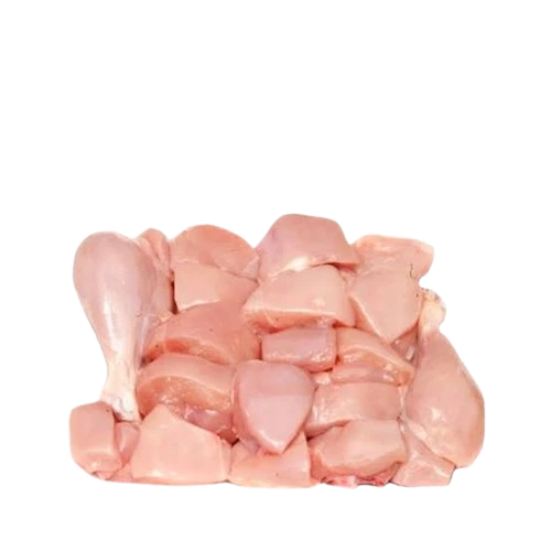 The Chicken Curry Cut (small) is a blend of dark and white meat that contains one leg cut in half, one wing without a tip, and one breast quarter with backbone. This package comprises bone-in and boneless chunks. When cooked, these chunks become juicy and tender, making them great for chicken curries.