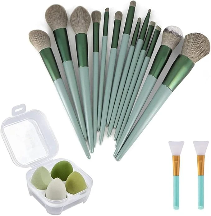Goodern 16-Piece Makeup Brush Set - Cosmetic Brush Kit with Beauty Egg & Face Brushes, Durable & Waterproof - Women & Girls Makeup Brushes & Tools - Green