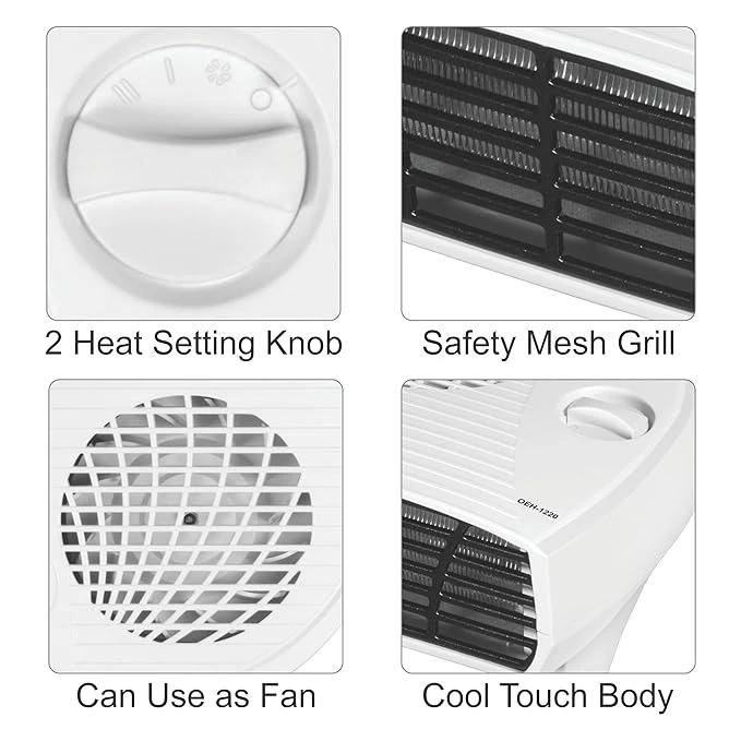 6. Thermal cut-off for added safety, Two heat settings-1000 watts and 2000 watts